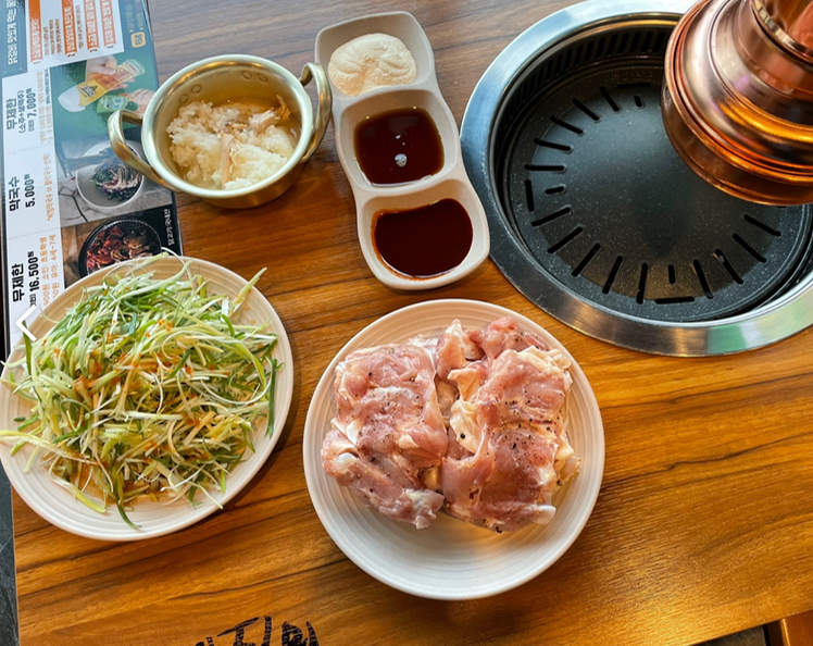 O : 개인적으로 무한리필 식당을 가보면, 음식의 질, 청결이 좋이 않았던 적이 많았다. BUT 여긴 아니 쥬! 무한리필 중 가장 쿠얼리뤼 있는 무한리필이라고 장담 해요! 기름튀는 고깃집의 테이블 끈쩍임을 정말 싫어하는데, 이 곳은 항상 깔끔해서 너무 좋습니다. 메인인 닭갈비도 맛 있지만....개인적으로는 치킨이 맛집인 것 같아요 !