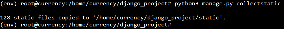 (env) root@currency:/home/currency/django_project# python3 manage.py collectstatic