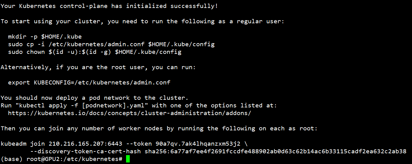 sudo kubeadm join 210.216.165.207:6443 --token 9v87ma.w7rek3zwwfdmrvqx --discovery-token-ca-cert-hash sha256:cc17337904d4c3f7bbae5d8d2de5a479b2829677603d5c80e345de069c72f980