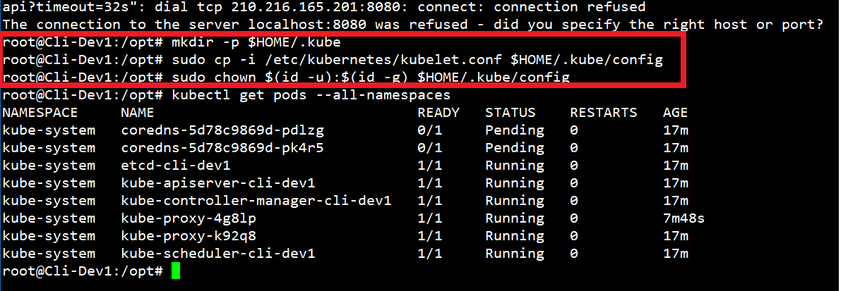 mkdir -p $HOME/.kube;sudo cp -i /etc/kubernetes/kubelet.conf $HOME/.kube/config;sudo chown $(id -u):$(id -g) $HOME7/.kube/config;