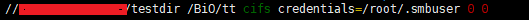 fstab 파일에 유저정보를 감추고 싶으면 아래와 같이 /root/.smbuser 파일을 만들고, fstab에 명시해준다.