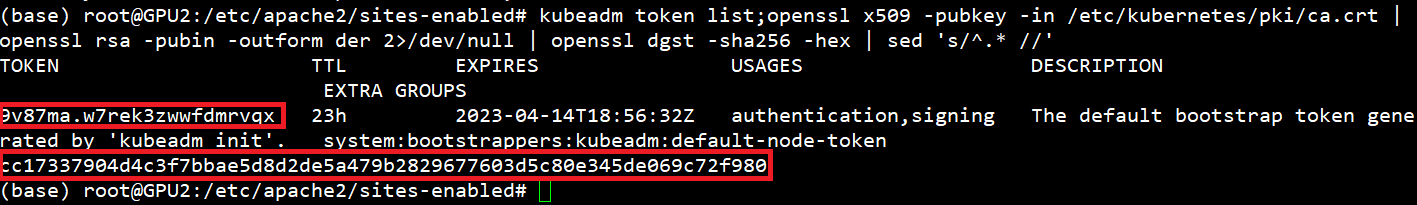 kubeadm token list;openssl x509 -pubkey -in /etc/kubernetes/pki/ca.crt | openssl rsa -pubin -outform der 2>/dev/null | openssl dgst -sha256 -hex | sed 's/^.* //'