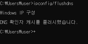 cmd에서 ipconfig/flushdns 를 입력해준다.